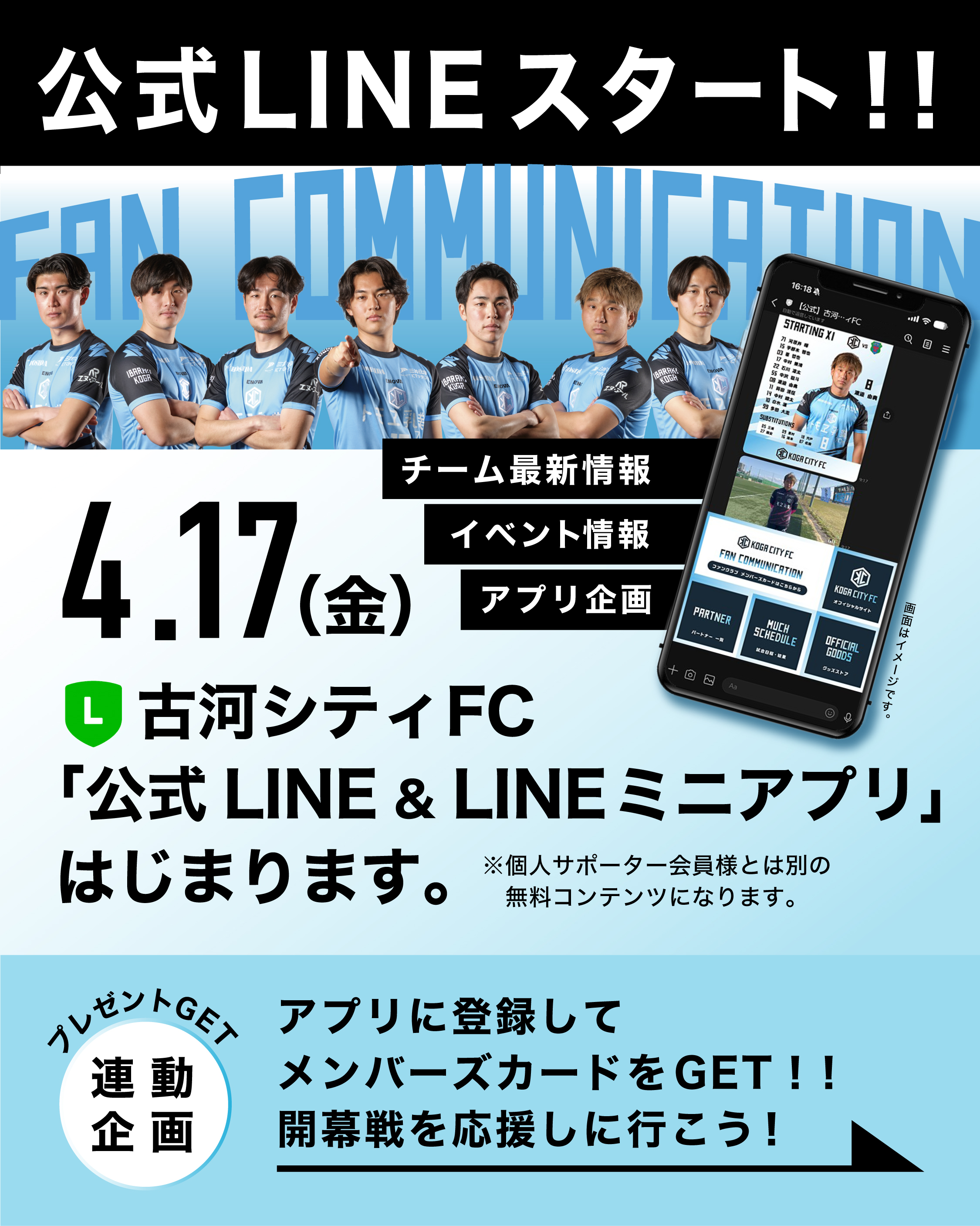 🆕公式LINE&LINEアプリ「古河シティFCファンクラブ(無料)」開始のお知らせ