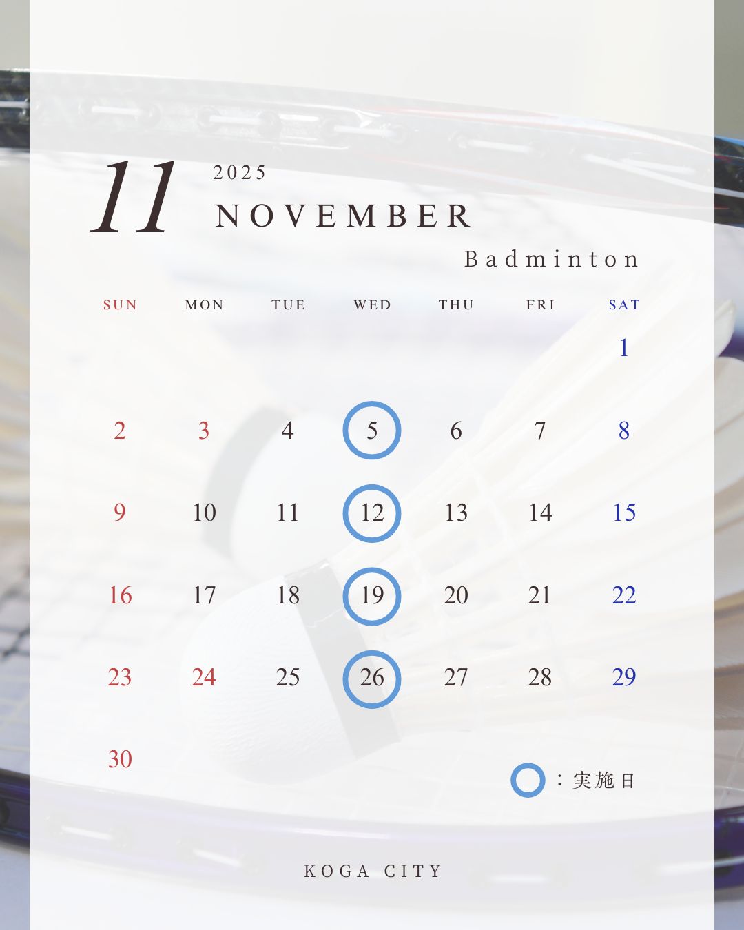 ⚠️12月、1月はお休みとなります。11月たくさんカラダを動かしましょう🏸!