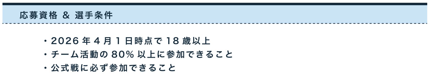 ※セレクション終了後、1週間以内に合格者のみ結果を通知します。