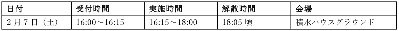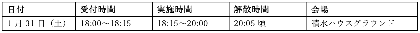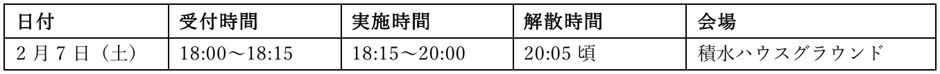 ※悪天候等で中止の場合は、各日程の翌日に実施いたします。(時間の変更はございません。)