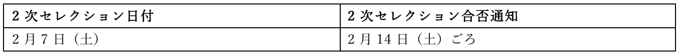 ※2 次セレクションは1次セレクションの合格者のみで実施いたします。