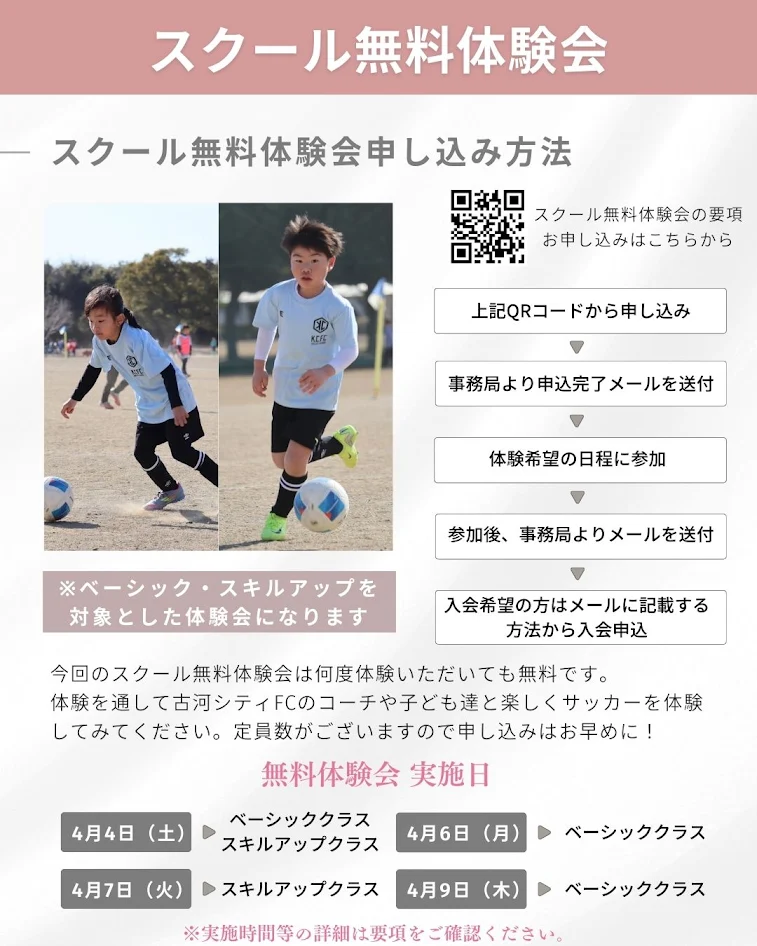 また、スクールを体験してから入会をご検討したい方は、4月上旬に無料体験会を実施しておりますので、ぜひ体験会に参加して入会をご検討してみてください!