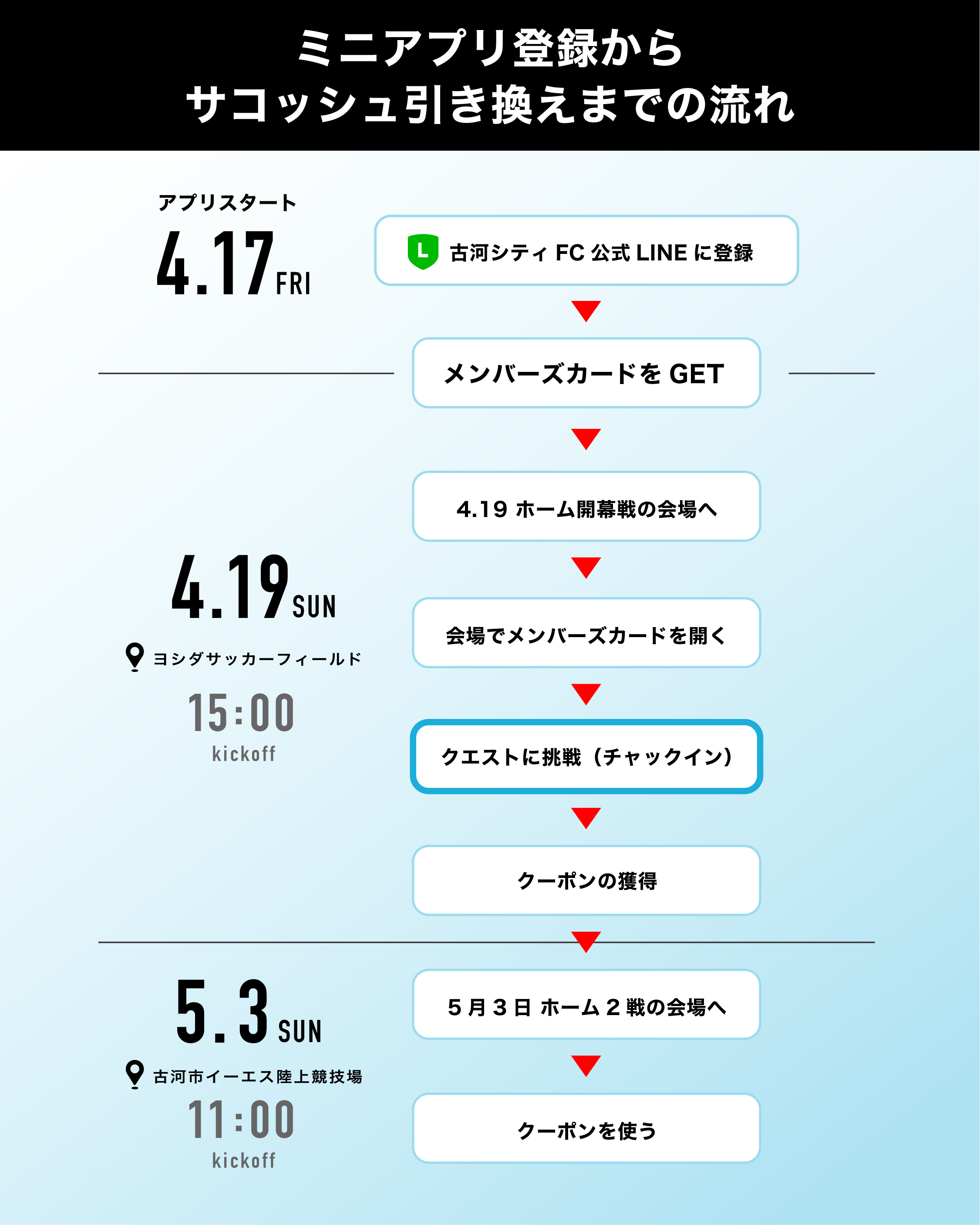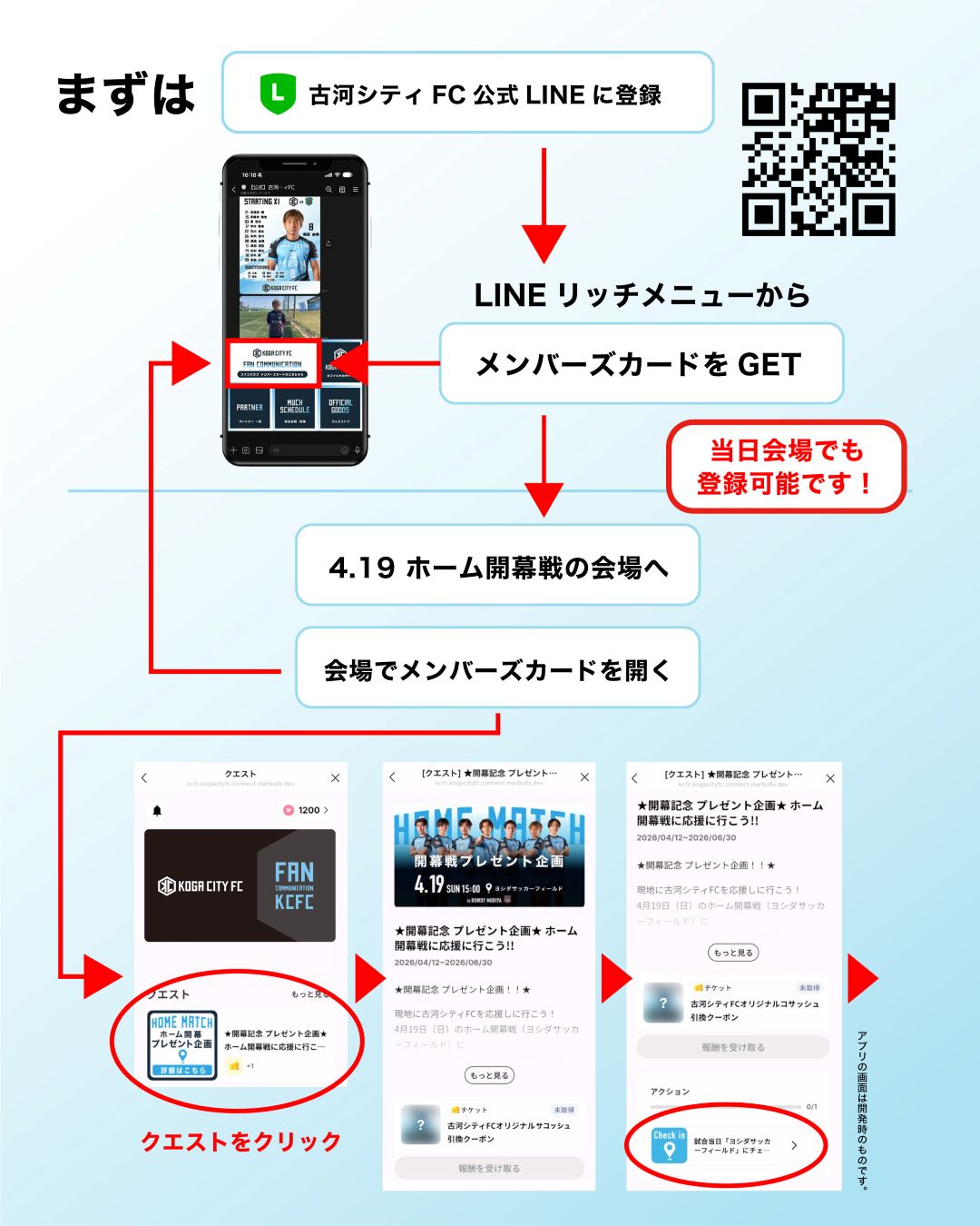LINEから簡単に利用でき、古河シティFCではファンクラブ会員証の表示やイベント企画などをLINE上で楽しむことができます。