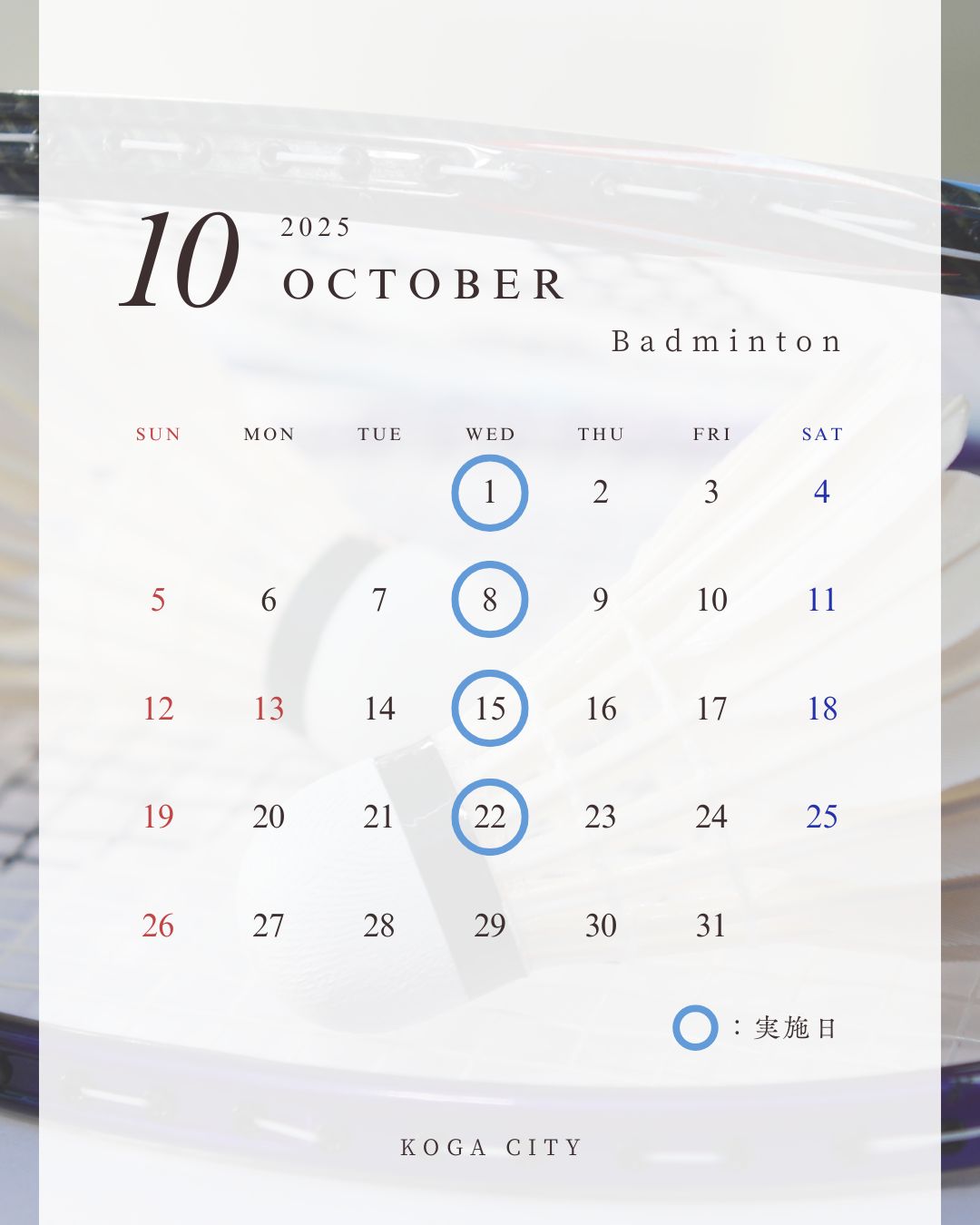 バドミントン10月実施日程表