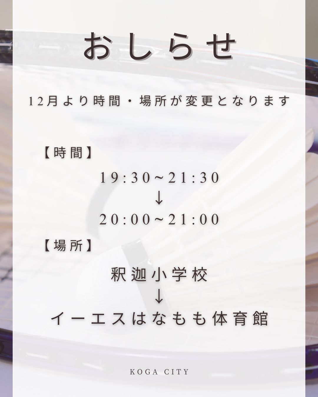 以前、体育館工事の関係で『⚠️12月、1月はお休みとなります。』とお伝えしましたが、会場が確保できましたので開催いたします!