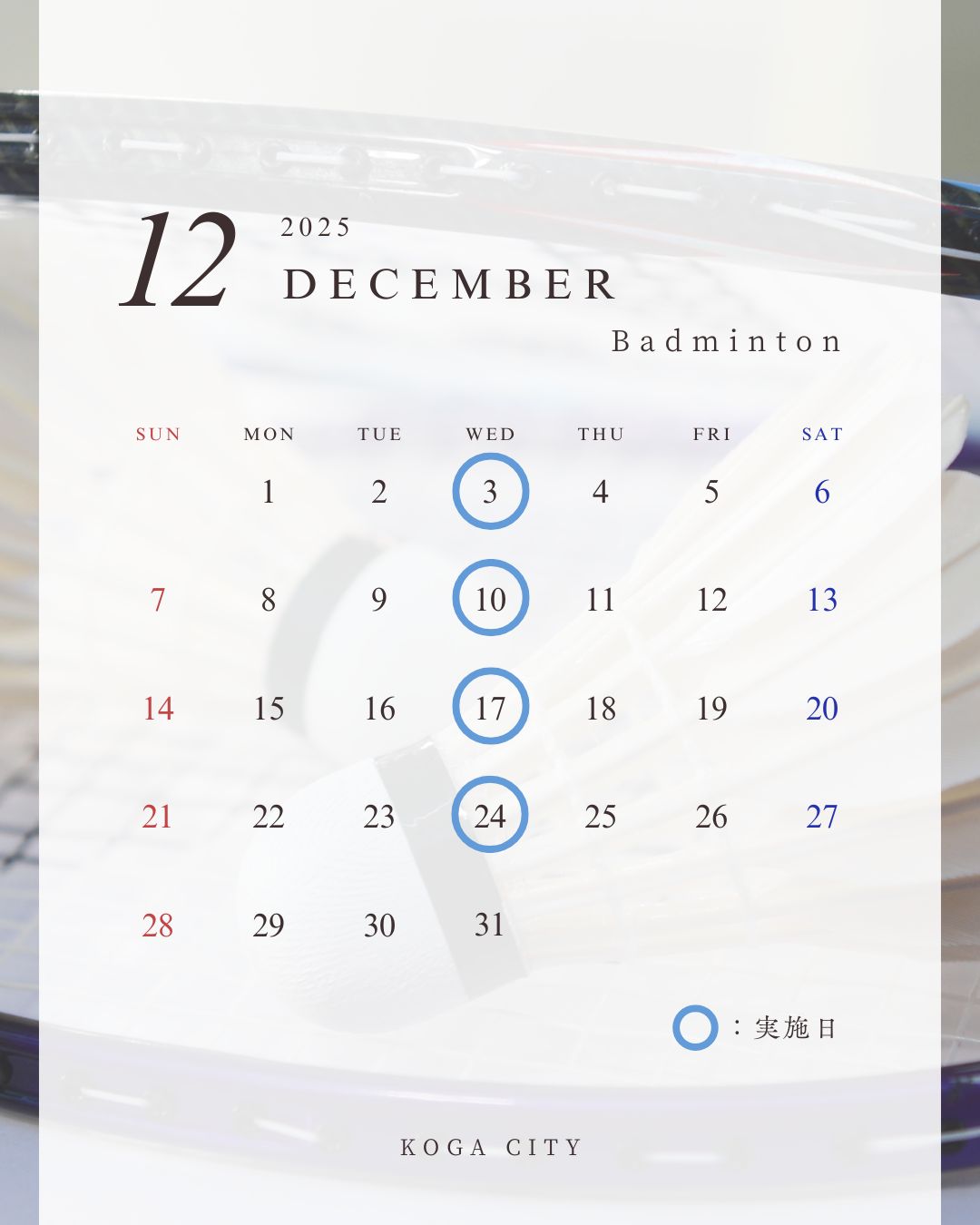 バドミントン12月実施日程表