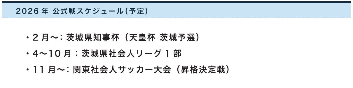 関東リーグ昇格、そして将来的なJリーグ参入に向けて現在もクラブの事業規模を成長させ、2026シーズンからはサッカー給制度の導入、選手が最大限サッカーに集中できるよう就労先の紹介体制の強化も進めています。