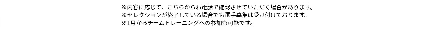 ※セレクション終了後、1週間以内に合格者のみ結果を通知します。